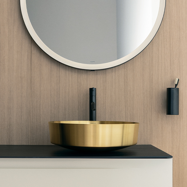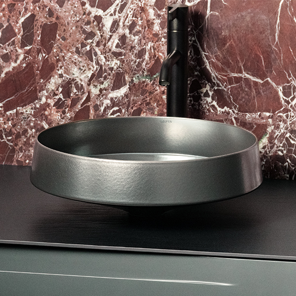 L'arrivo dell'acciaio VITREON arricchisce il mondo visivo di LAUFEN con una palette più suggestiva, che fonde toni scuri, ricchi metallici e accessori neri in un linguaggio di design contemporaneo. Progettato per integrarsi perfettamente con le collezioni di mobili LAUFEN, crea un'estetica calda e raffinata definita da superfici vivaci ed effetti tattili unici.